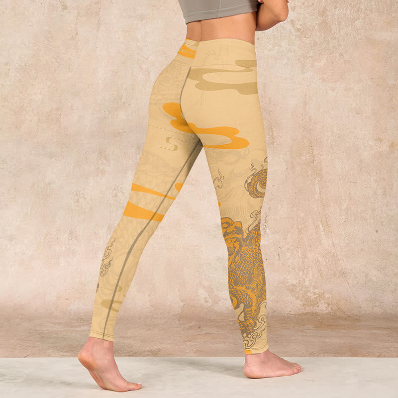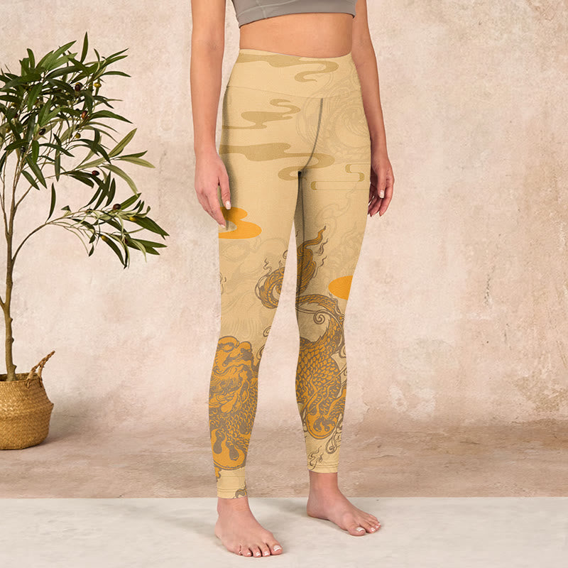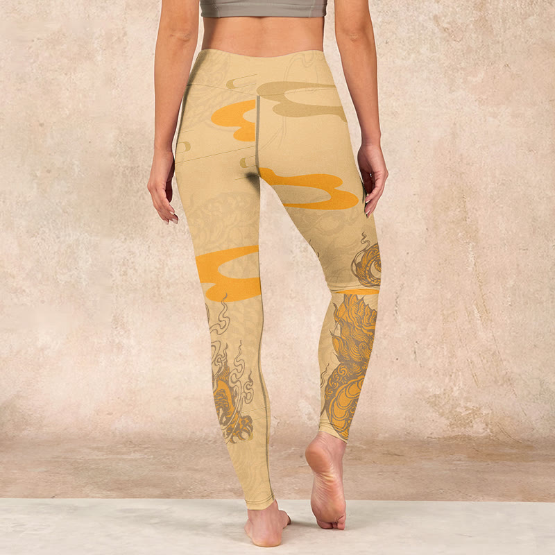 Buddha Stonesと貔貅雲柄のジムレギンス レディース ヨガパンツ