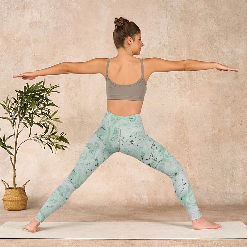 • デザインインスピレーション:ハニーデューグリーンとホワイトのフローライン模様が特徴のレギンスは、爽やかさ、活力、そして自然な優雅さを象徴し、自然の癒しの要素を反映しています。このデザインは、落ち着きバランス感覚を呼び起こし、ワードローブに穏やかな美学を求める方にとって理想的な選択肢です。