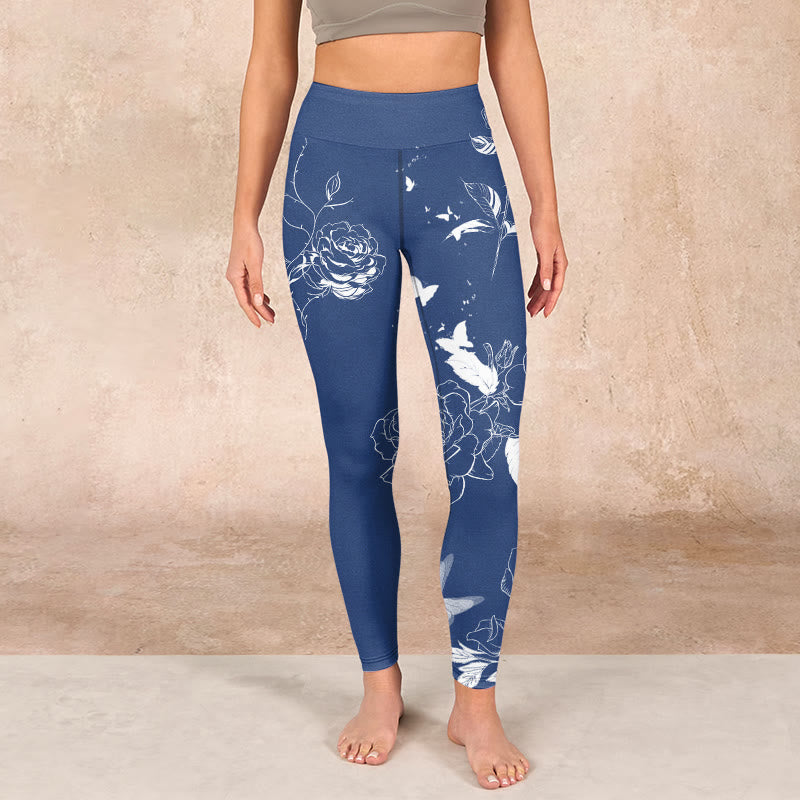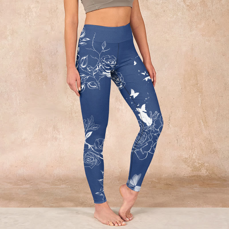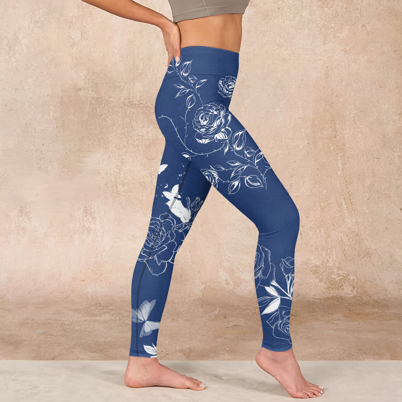 - デザインインスピレーション:このレギンスは、青い背景に白いバラと蝶をあしらったデザインで、純粋さ、無垢、そして変容を象徴しています。白いバラは忠誠心と新たな始まりを、蝶は変化と自由を象徴し、穏やかな青い背景に、自然の美しさと個人の成長の旅路を称えるパターンを生み出しています。