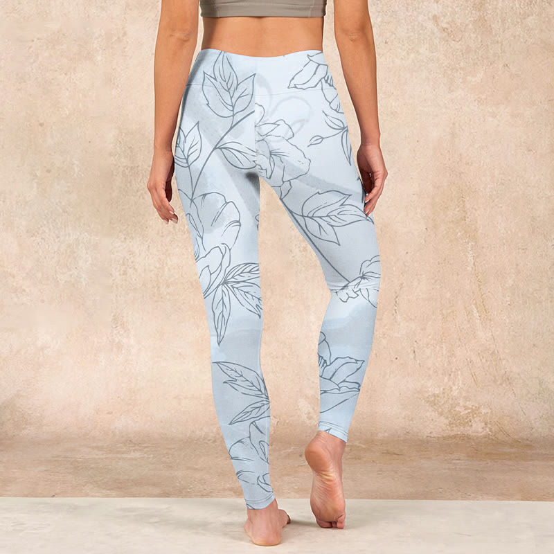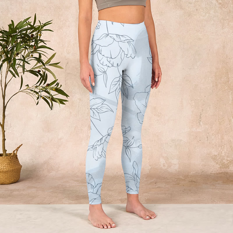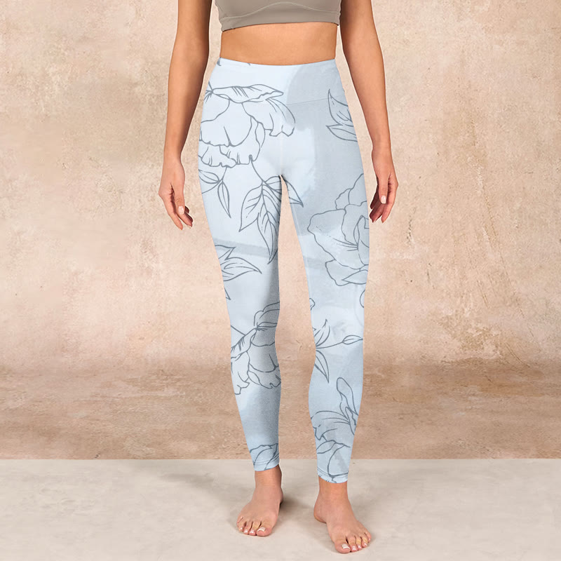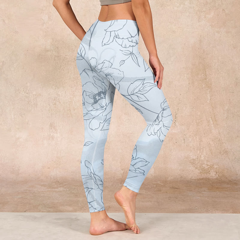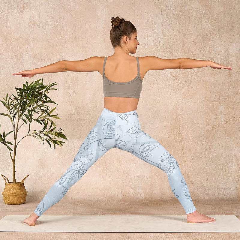 牡丹の花をあしらったヨガパンツは、柔らかなライトブルーのベースに、深みのあるブルーの線で描かれた繊細な牡丹と葉のスケッチが、美しさと力強さを象徴しています。通気性と伸縮性に優れた素材を使用したこのレギンスは、ヨガや瞑想に最適な快適なフィット感を提供します。エレガントな牡丹のデザインは、落ち着きを与え、あらゆる動きに集中力と安らぎをもたらします。💕