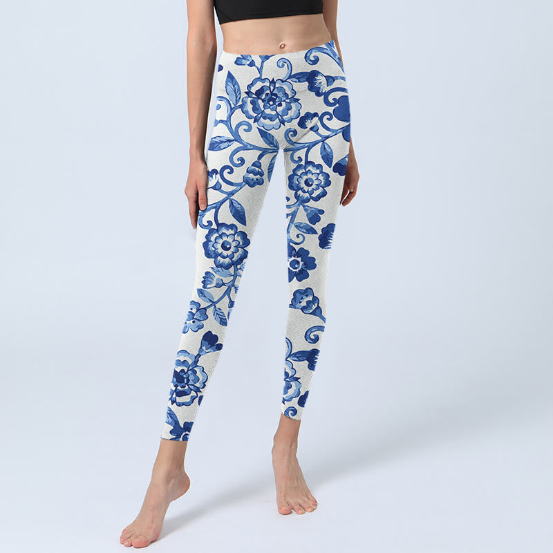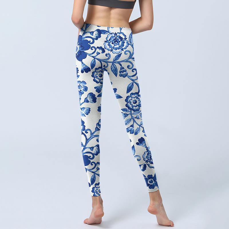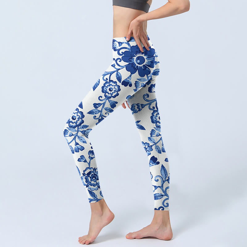 デザインインスピレーション:レギンスには、青い花、枝、葉が互いに絡み合ったデザインが施され、自然界に見られる一体感と調和を象徴しています。このデザインは成長と回復力を反映し、着用者に繋がりの美しさと、人生の繋がりを受け入れることで生まれる強さを思い出させます。