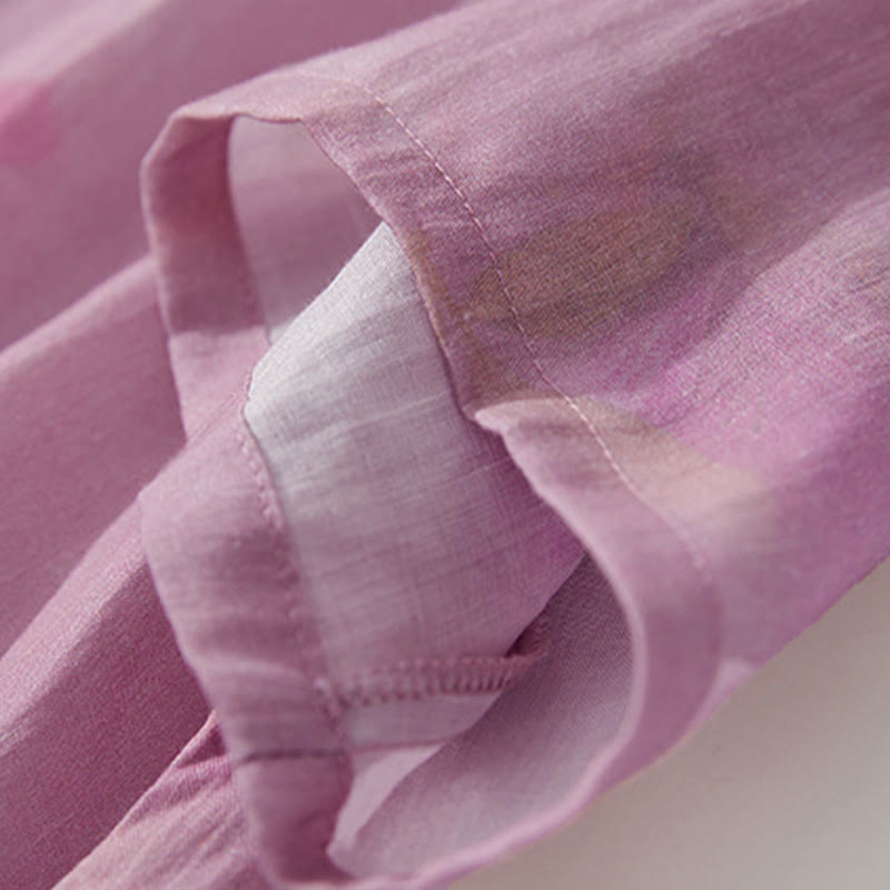 Buddha Stones 夏の蘭の花柄スタンドカラーデザイン半袖ミディドレス(ポケット付き) - image 11