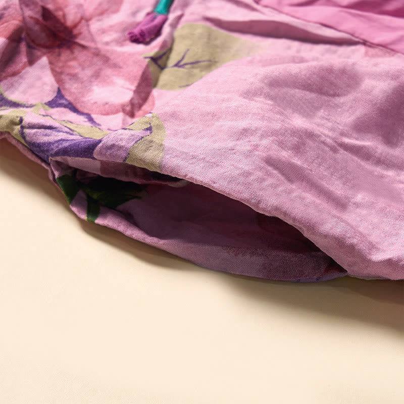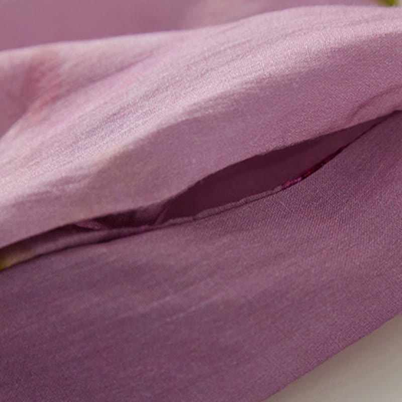 Buddha Stones 夏の蘭の花柄スタンドカラーデザイン半袖ミディドレス(ポケット付き) - ペールバイオレットレッド - US12、 UK/AU16、 EU44 (3XL) - image 0