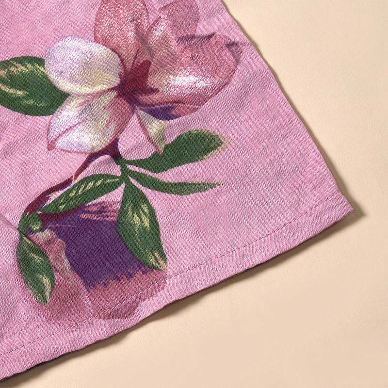 Buddha Stones 夏の蘭の花柄スタンドカラーデザイン半袖ミディドレス(ポケット付き) - image 8