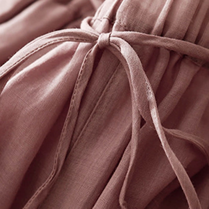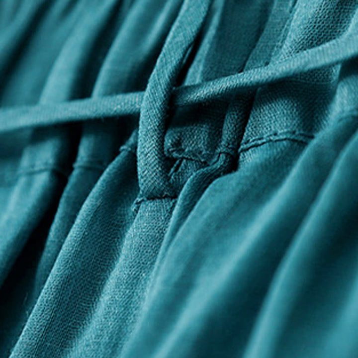 - シンプルなデザイン: このパンツは伸縮性のあるウエストバンドとドローストリングのデザイン要素を備えています。
