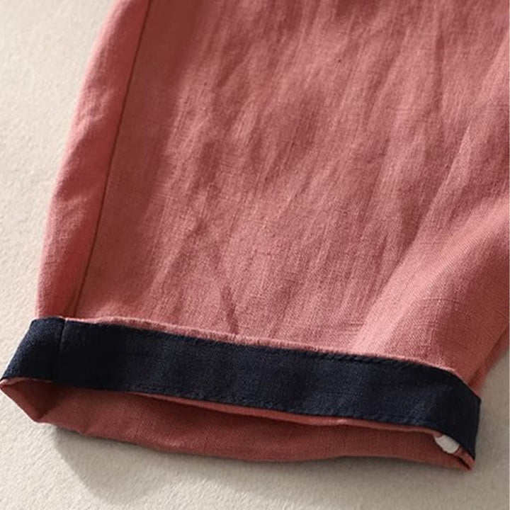 Buddha Stones通勤用カラーコントラストドローストリング7-8丈レディースパンツ(ポケット付き) - image 1
