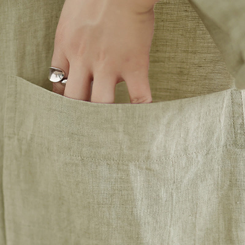 Buddha Stones 春のクルーネック長袖無地レディースコットンボタンシャツポケット付き - image 8