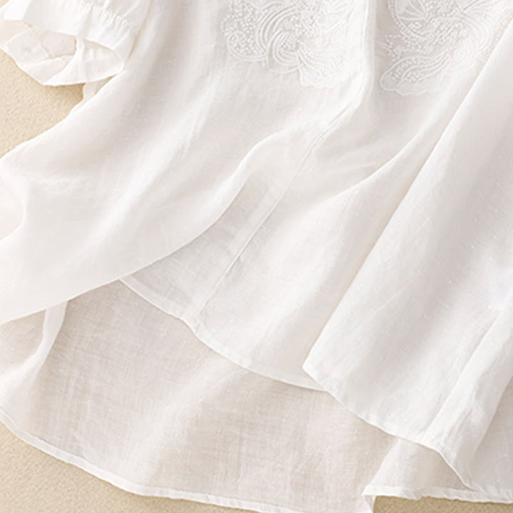 Buddha StonesVネック バタフライ レディース ハーフスリーブ シャツ - 白 - US14、 UK/AU18、 EU46 (2XL) - image 6