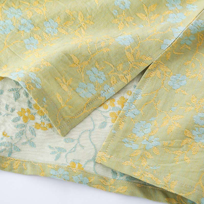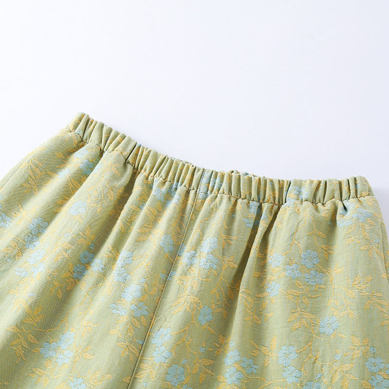 Buddha Stones 2ピース カラフルフローラルリーフ 長袖 Vネック シャツパンツ コットンパジャマセット ポケット付き - 黄緑 - US12、 UK/AU16、 EU44 (XL) - image 0