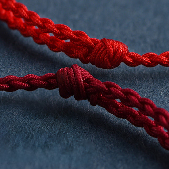 チベット密教の伝統では、儀式の際に手首に紐や糸を巻くことが一般的です。伝統的に、ラマ僧は紐を祝福し、結び目を作り、マントラを込めます。他の伝統と同様に、これらの赤い紐は幸運をもたらし、守護をもたらすと言われています。古代中国の伝説では、運命の赤い糸は目に見えないもので、人生が絡み合うすべての人々を結びつけるとされています。これは中国の縁結びの神である月老によって支配されており、主に結婚する運命にある二人の絆と関連付けられています。歴史を通して、そして様々な哲学において、赤い糸は守護、信仰、幸運、強さ、そして繋がりのために身に着けられてきました。