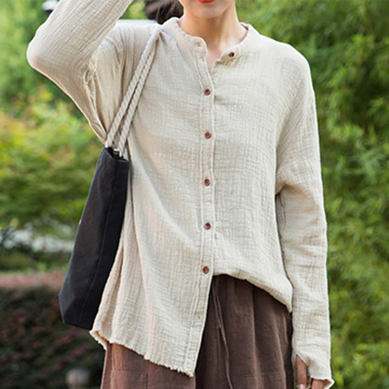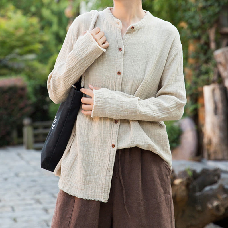 ダブルレイヤード サンドウォッシュコットン レディースシャツは、柔らかなサンドウォッシュ加工のコットンとリネンを使用し、通気性と耐久性に優れた着心地を実現しています。ダブルレイヤーデザインが深みと快適さをプラスし、シンプルさと落ち着きを象徴しています。心安らぐひとときにぴったりのこのシャツは、考え抜かれた構造で、穏やかな気持ちと自然との繋がりを感じさせてくれます。💕