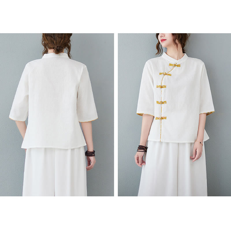 - プレミアム素材:トップスは高品質のコットンリネン生地で作られており、肌に優しいです。通気性、リラックス感、快適さに優れ、過度の発汗を防ぎ、体を快適に保ちます。また、コットンリネンは健康的な運動にも最適な環境に優しい素材です。