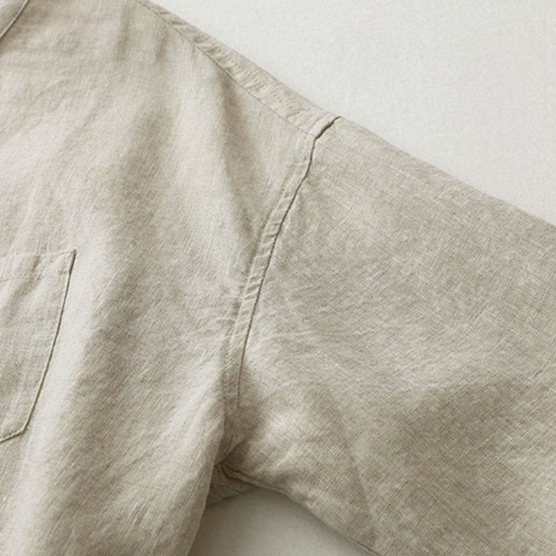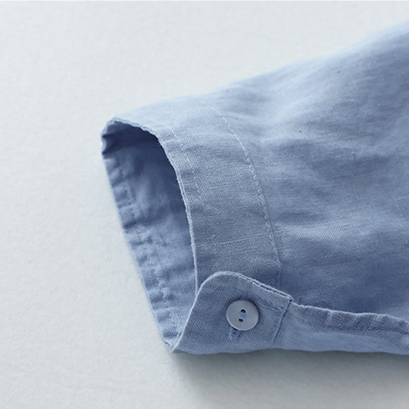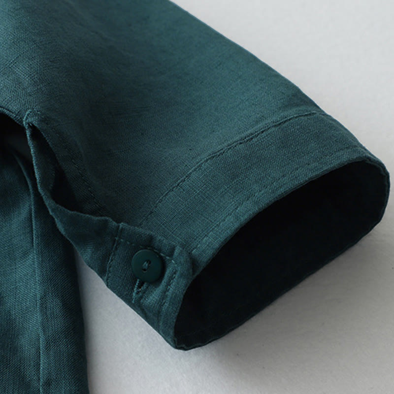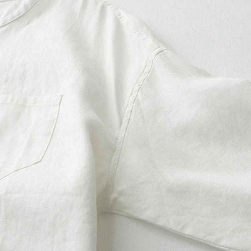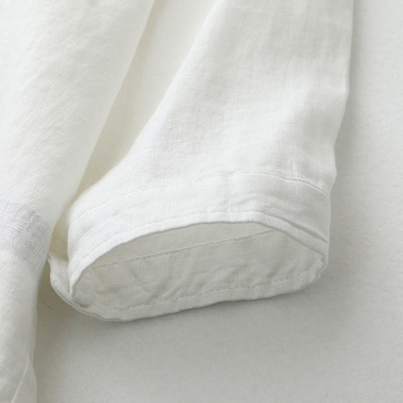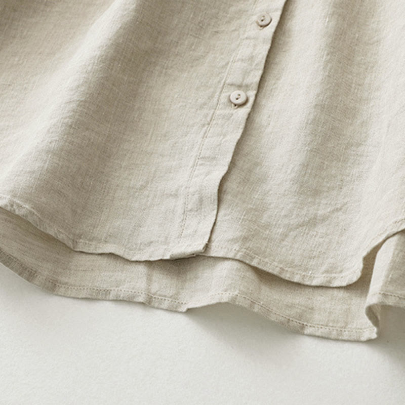 Buddha Stones無地ボタン七分袖シャツ - リネン - US8-10,UK/AU12-14,EU40-42 (2XL) - image 1