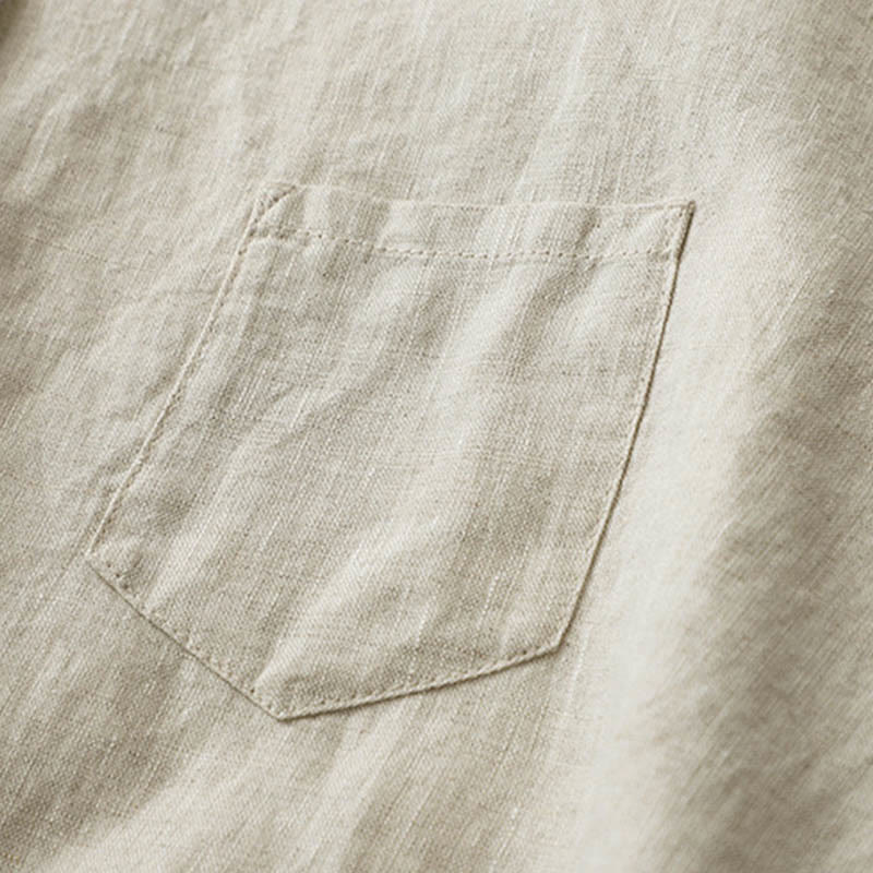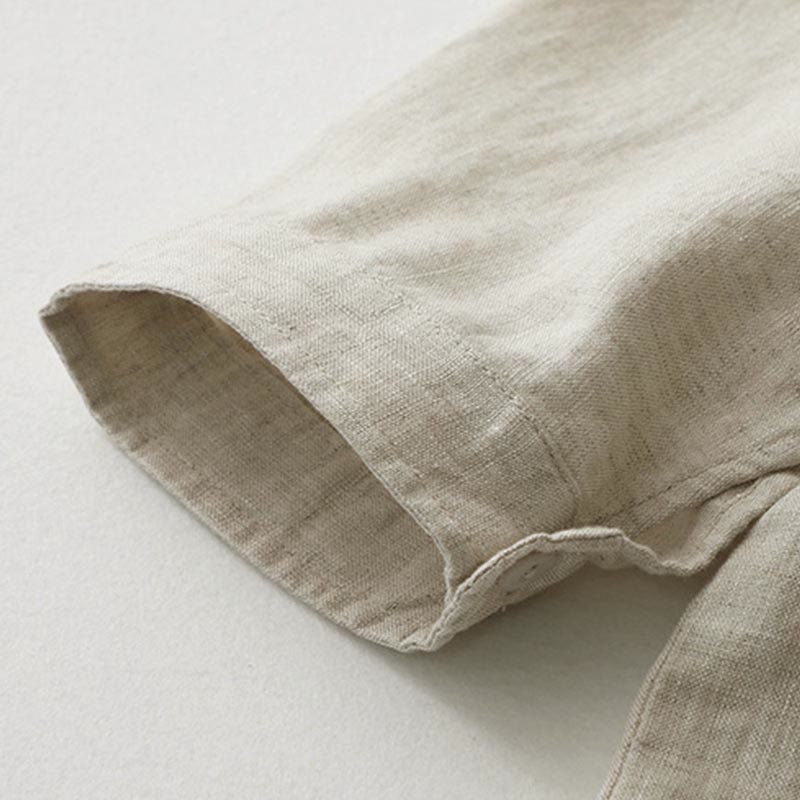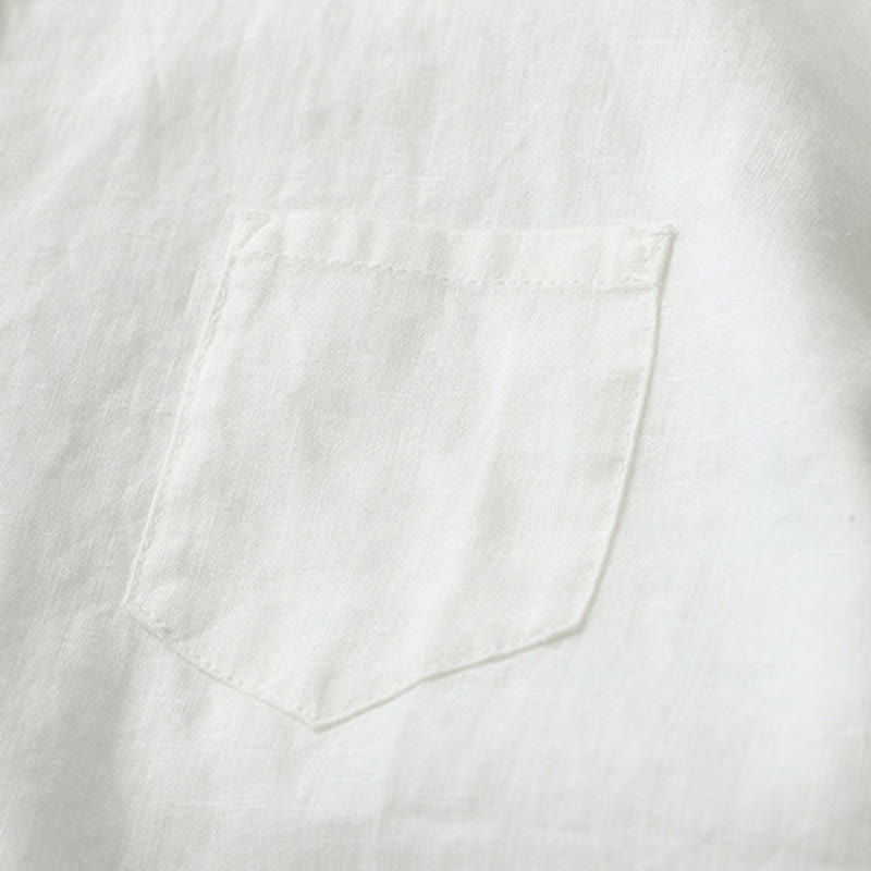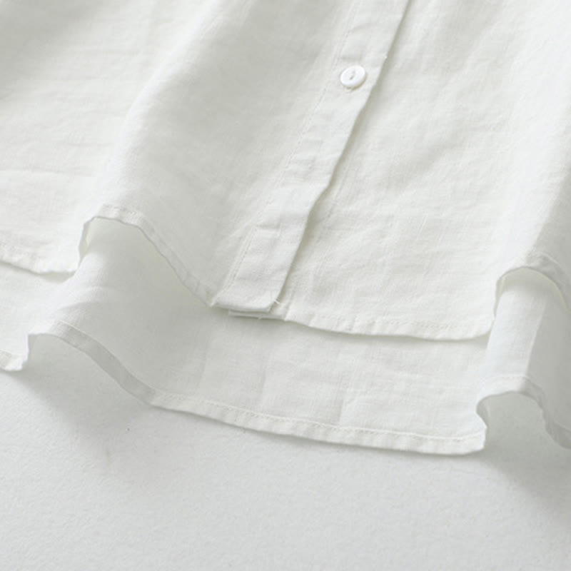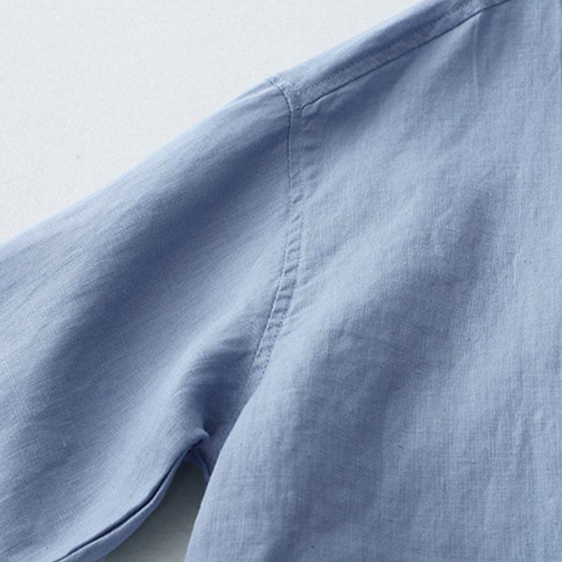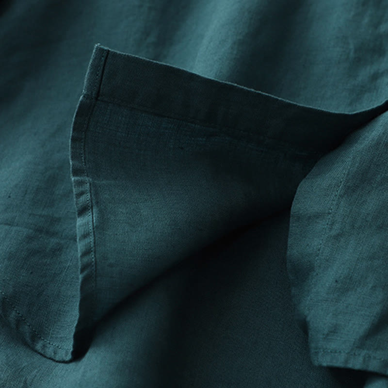 Buddha Stones無地ボタン七分袖シャツ - リネン - US8-10,UK/AU12-14,EU40-42 (2XL) - image 1