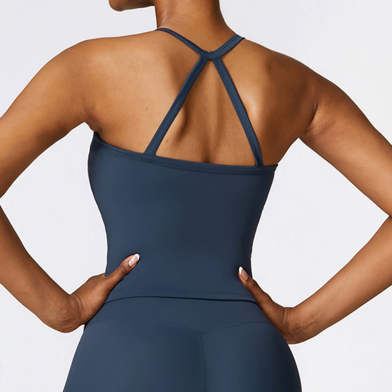 Buddha Stones無地 クロップ タンクトップ ハイウエスト ショーツ スポーツ フィットネス ジム ヨガ ウェア - ダークブルー - トップ - US8-10、 UK/AU12-14、 EU40-42 (XL) - image 0