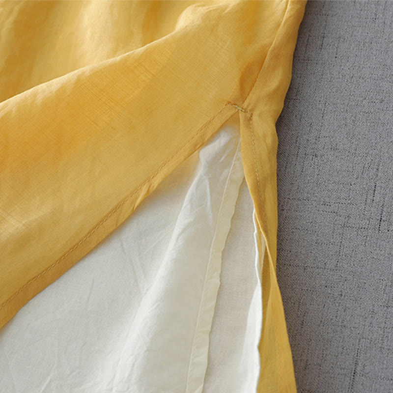 無地フロッグボタンダブルレイヤーシャツは、シンプルさと独自の職人技が融合した一枚です。この七分袖シャツは、伝統的なフロッグボタン留めとダブルレイヤーデザインが特徴で、スタイリッシュさと耐久性を高めています。通気性に優れたコットンリネン素材を使用し、一日中快適に着用できるリラックスしたフィット感を提供します。エレガントで控えめな魅力で、様々なシーンにぴったりです。💕