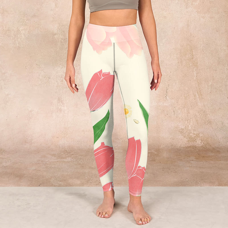 ピンクのチューリップフラワーヨガパンツは、鮮やかなチューリップの花柄が特徴で、快適なフィット感と柔軟なサポート力を提供します。柔らかな生地が体の動きに合わせて動き、ヨガやフィットネスに最適です。このパンツは、ヨガ中に落ち着きとポジティブな気持ちをもたらしマインドフルネスと感情のバランスを整え自然な美しさと再生を表現しています。💕