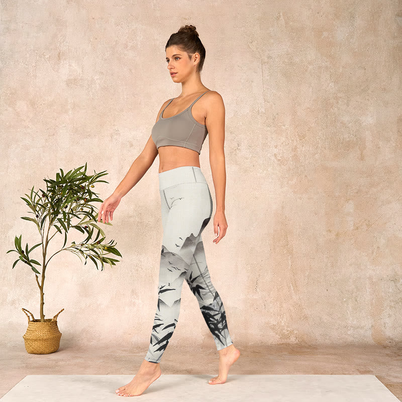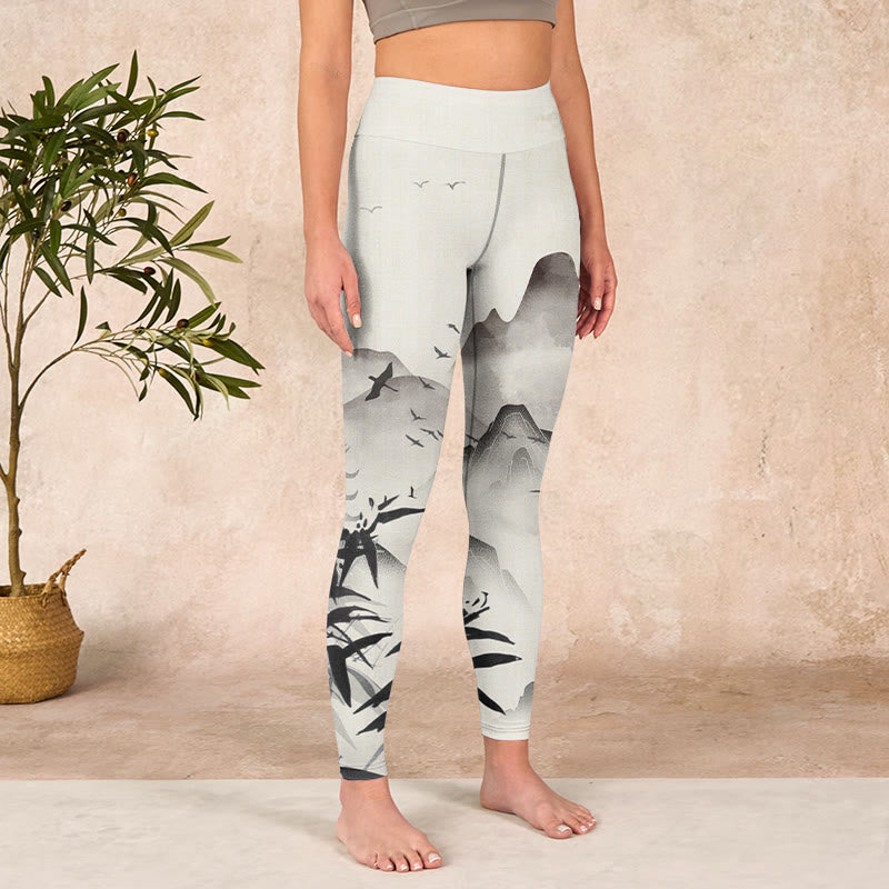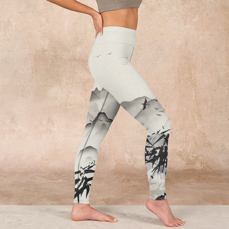- デザインインスピレーション:このレギンスには、回復力、静寂、そして自然との調和を象徴する墨竹山のデザインが施されています。竹は力強さとしなやかさを、墨絵のスタイルは芸術的表現と文化遺産を想起させ、伝統的な芸術様式と融合した山岳風景の静謐な美しさを称えています。