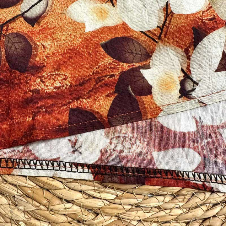 Buddha Stonesカジュアルプリント リーフプランツ レディース クルーネックデザイン 半袖 ポリエステルTシャツ