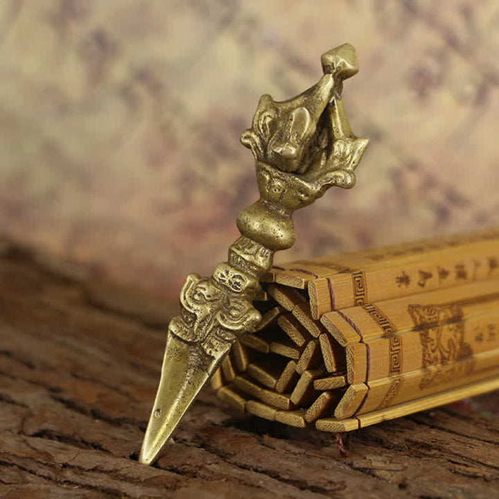 金剛杵は、チベットの仏教儀式で用いられる五叉の儀式用具です。金剛杵は、ダイヤモンド(不滅)と雷(抗えない力)の特性を象徴しています。ダイヤモンドの特性の象徴として、金剛杵はダイヤモンドが最も硬い石であることから、不滅を意味します。雷の象徴として、金剛杵は抗えない力を表します。インドラ神がこの武器で無知な者を殺すことから、金剛杵は無知を切り裂くことを意味します。
