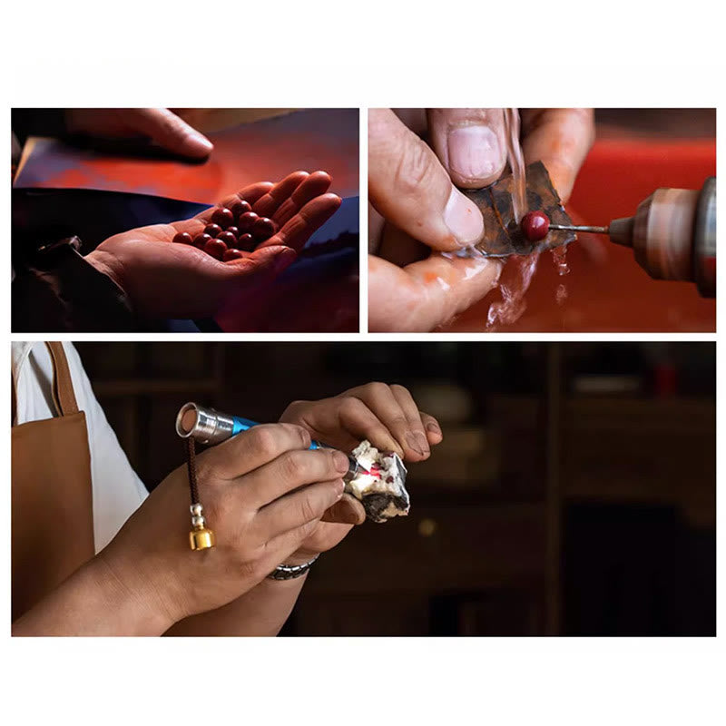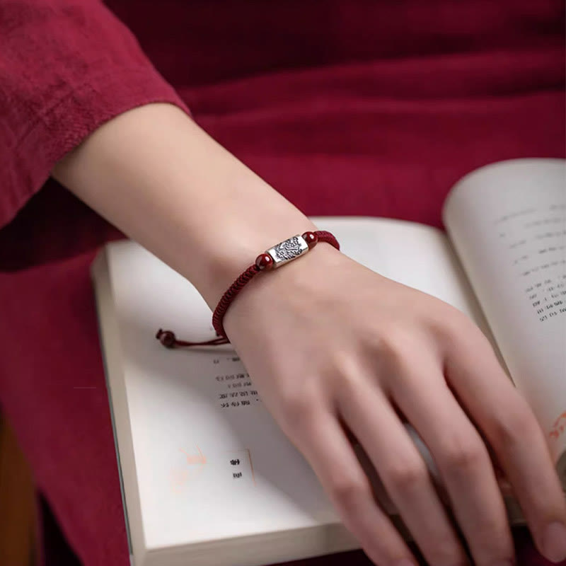 チベット密教の伝統では、儀式の際に手首に紐や紐を巻くことが一般的です。伝統的に、ラマ僧は紐を祝福し、結び目を作り、マントラを込めます。他の伝統と同様に、これらの赤い紐は幸運をもたらし、守護をもたらすと言われています。古代中国の伝説では、運命の赤い糸は目に見えないもので、人生が絡み合うすべての人々を結びつけます。これは中国の縁結びの神である月老によって支配されており、結婚する運命にある二人の絆と深く結びついています。歴史を通して、そして様々な哲学において、赤い紐は守護、信仰、幸運、強さ、そして繋がりのために身に着けられてきました。