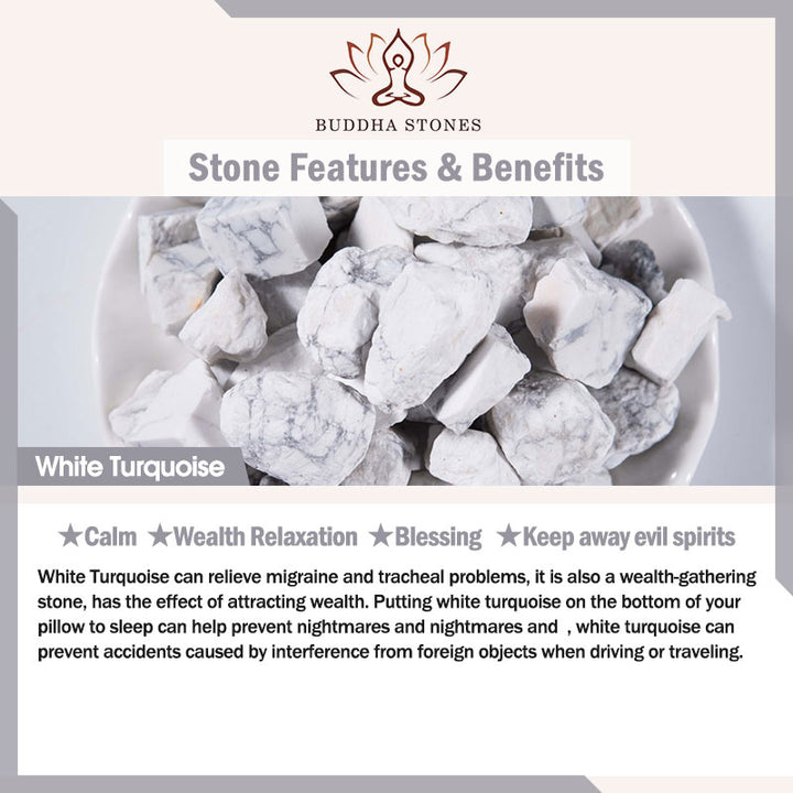 ホワイトターコイズの心を落ち着かせるエネルギーと富をもたらすパワーをBuddha Stonesブレスレット体感してください。蓮のシンボルは悟りと新たな始まりを象徴し、困難な時期でも信念を持ち、耐え抜くことを思い出させてくれます。高品質の素材を用いて手作りされたこのブレスレットは、ユニセックスで、普段使いに最適です。