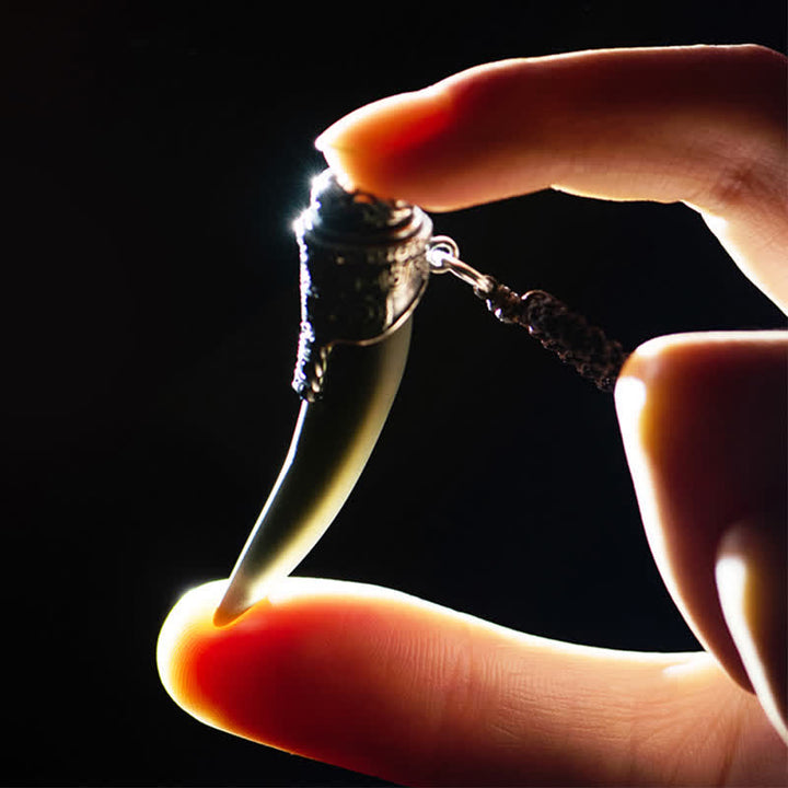 925スターリングシルバー ブラックオブシディアン ウルフトゥースパターン 強さのネックレスペンダント