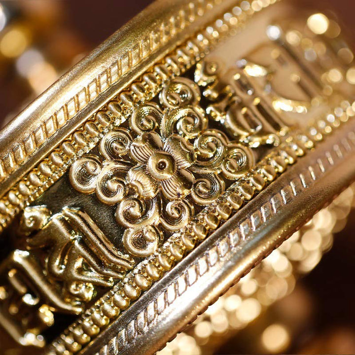 これら 6 つの真実の言葉「Om Mani Padme Hum」は、チベットで最も一般的なマントラです。このマントラは、宇宙との一体感を感じられる音と振動を生み出します。このマントラには、高い精神的および創造的パワーがあると考えられています。 6 つの真実の言葉 (Om Mani Padme Hum) の意味: オムは宇宙の振動を意味し、不純な体、言葉、心を象徴しています。マー ニーは宝石を意味し、方法、慈悲、愛の要素、悟りを開こうとする利他的な意図を象徴しています。パド ミーは蓮を意味し、知恵を象徴しています。フムは不可分性を意味し、純粋さを象徴し、方法と知恵の統一によって達成できます。このチャントは、喜びと平和な振動をもたらし、この詩節には、苦しみの本質の真実とその原因を取り除く方法が含まれていると考えられています。