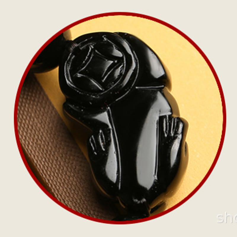 Buddha Stonesナチュラルゴールド光沢黒曜石貔貅オーム・マニ・パドメ・フム富編組ブレスレット