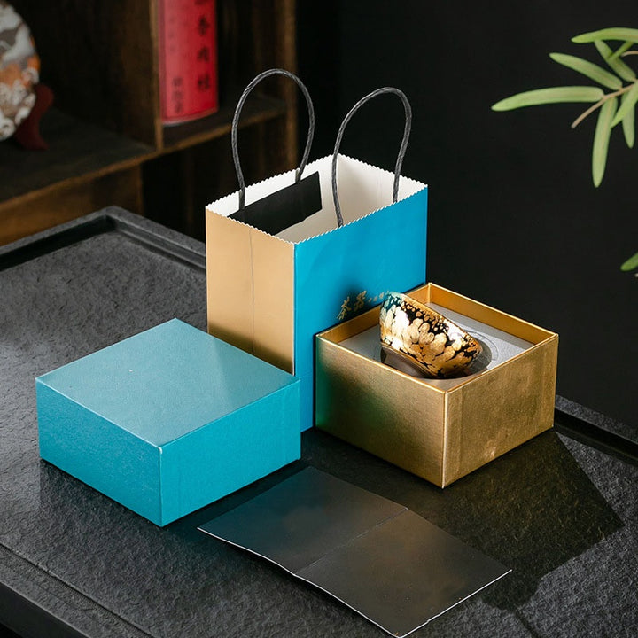 Buddha Stones24K ゴールド スポットパターン 中国 Jianzhan 陶器 ティーカップ カンフー ティーカップ ボウル ギフトボックス付き