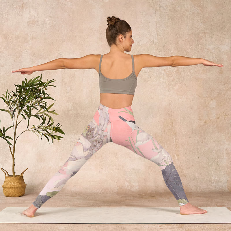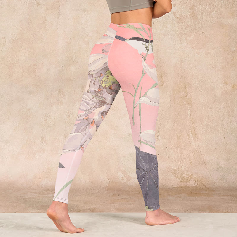 枯れた白い蓮のBuddha Stonesのジムレギンス レディース ヨガパンツ - image 8