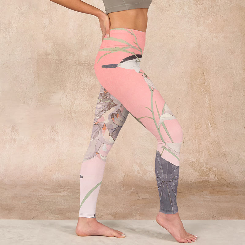 仏石グレーゴールデン鯉魚蓮プリントライクラ生地ジムレギンスレディースヨガパンツレギンスBS 1