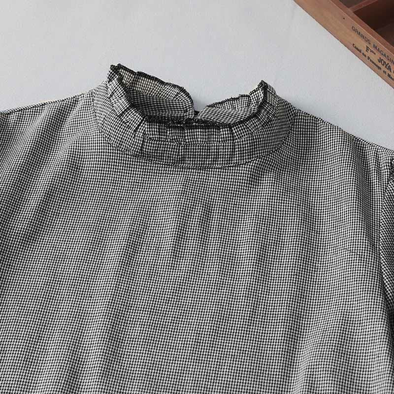 Buddha Stonesのチェック柄プリーツフリルデザイン長袖コットンミディドレス(ポケット付き) - image 5