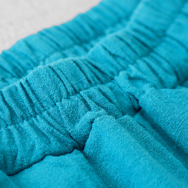 Buddha Stonesカジュアル 無地 7-8丈 レディース コットンリネン ハーレムパンツ ポケット付き