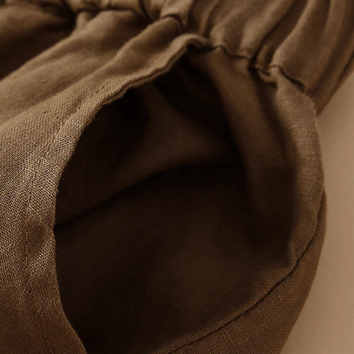 レースアップ ショーツ レディース 無地 コットンリネン ポケット付き Buddha Stones