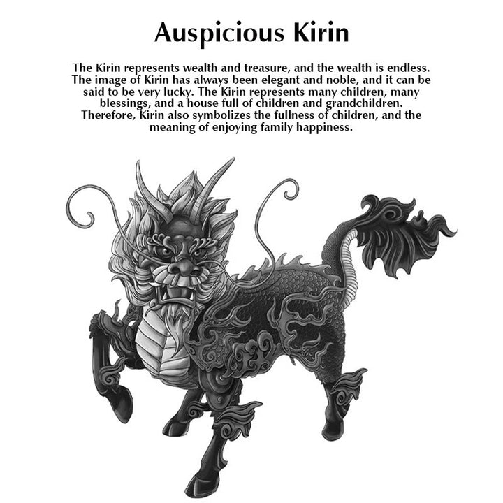 麒麟(きりん)は、東アジアの様々な文化圏で知られる、有蹄類の神話上の怪物で、賢者や高貴な君主の到来や逝去を告げる際に現れるとされています。体中に炎のようなものをまとって描かれることが多いです。
