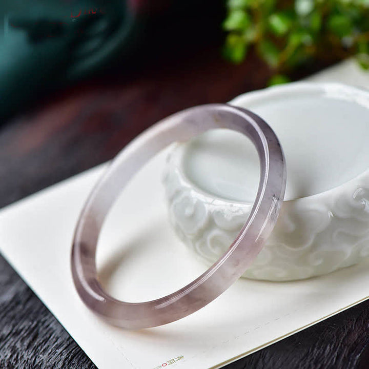 パープルゴールデンシルク翡翠の開運財運ブレスレットバングルは、幸運の象徴とされるパープルゴールデンシルク翡翠で作られたジュエリーです。ブレスレットバングルとして着用できるようにデザインされており、幸運を招き、愛を引き寄せると言われています。