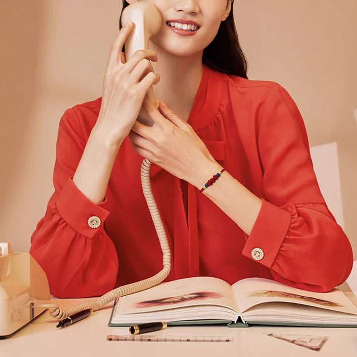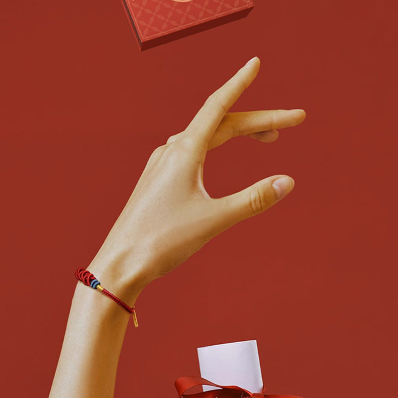 チベット密教の伝統では、儀式の際に手首に紐や紐を巻くことが一般的です。伝統的に、ラマ僧は紐を祝福し、結び目を作り、マントラを込めます。他の伝統と同様に、これらの赤い紐は幸運をもたらし、守護をもたらすと言われています。古代中国の伝説では、運命の赤い糸は目に見えないもので、人生が絡み合うすべての人々を結びつけます。これは中国の縁結びの神である月老によって支配されており、結婚する運命にある二人の絆と深く結びついています。歴史を通して、そして様々な哲学において、赤い紐は守護、信仰、幸運、強さ、そして繋がりのために身に着けられてきました。