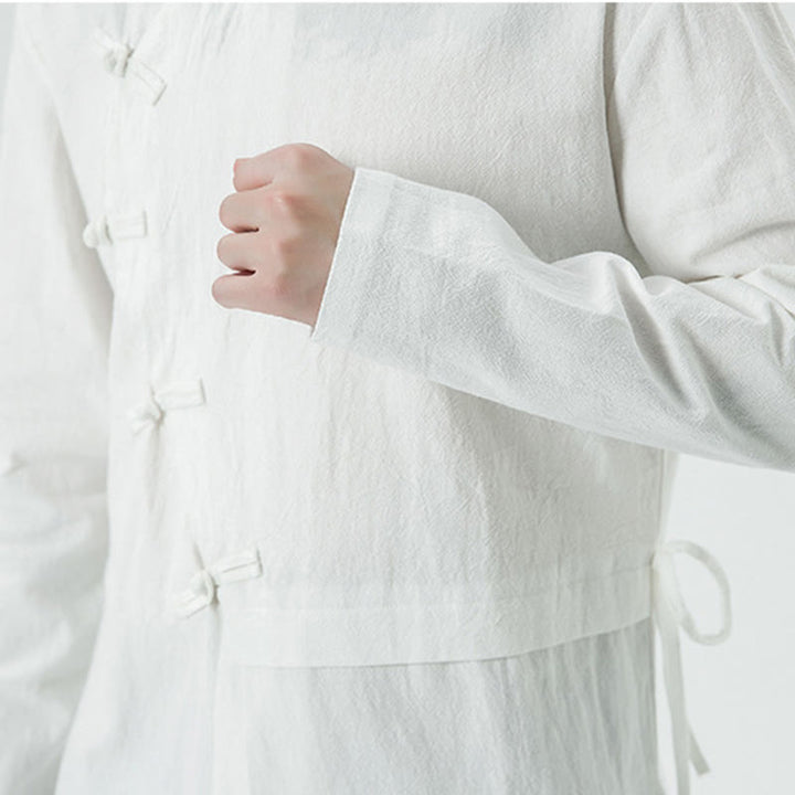 Buddha Stonesヴィンテージ中国風フロッグボタンコットン長袖メンズシャツ - 白 - US/UK/AU46、 EU56 (5XL) - image 1