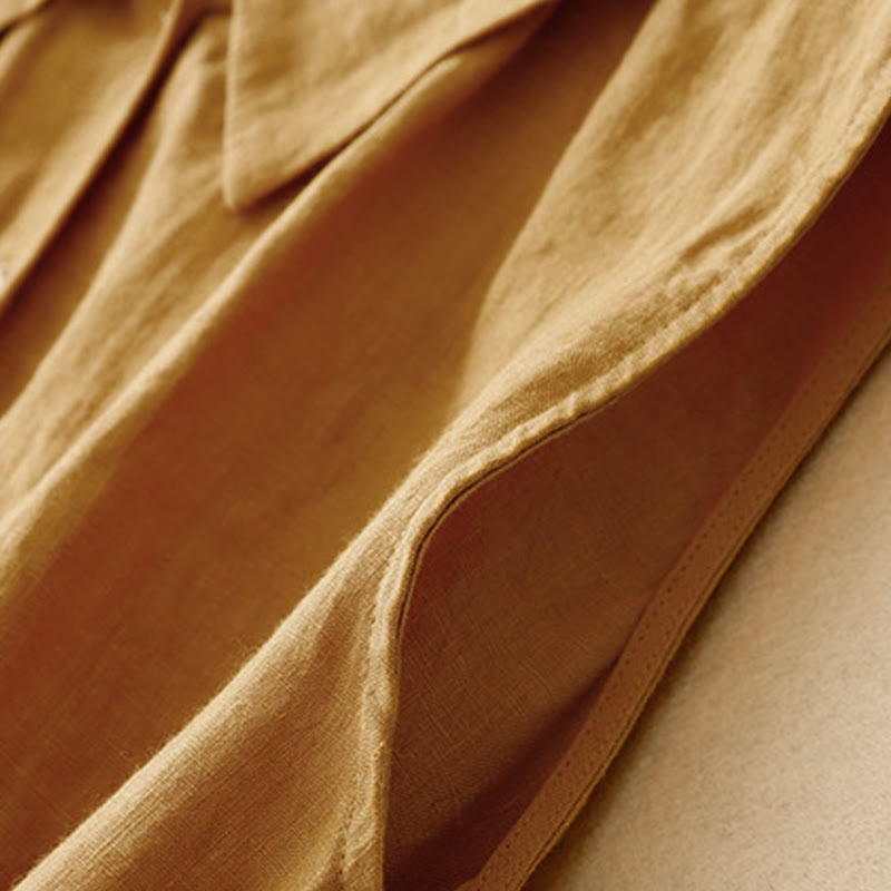 Buddha Stonesサマープレーンレースアップボタンフロントデザインラペルノースリーブコットンミディドレスカーディガン - image 10