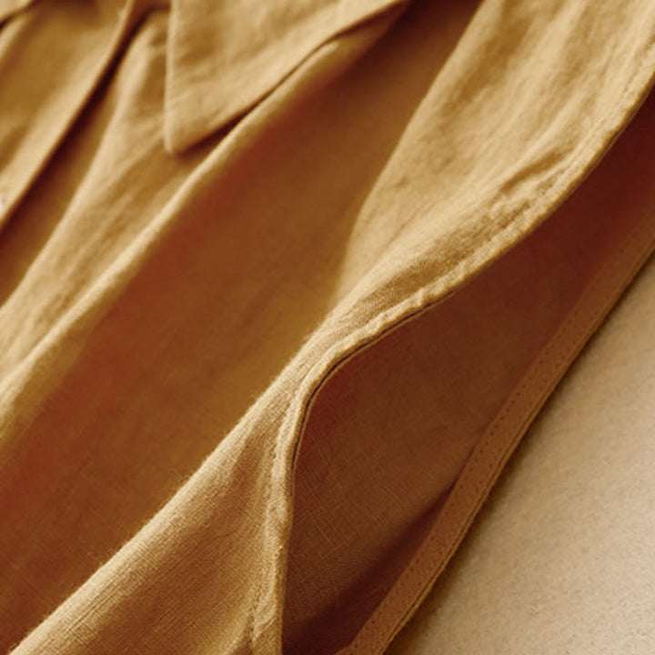 Buddha Stonesサマープレーンレースアップボタンフロントデザインラペルノースリーブコットンミディドレスカーディガン - image 1