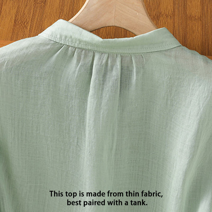- 追記:このトップスは薄手の生地で作られており、タンクトップと合わせるのがおすすめです。