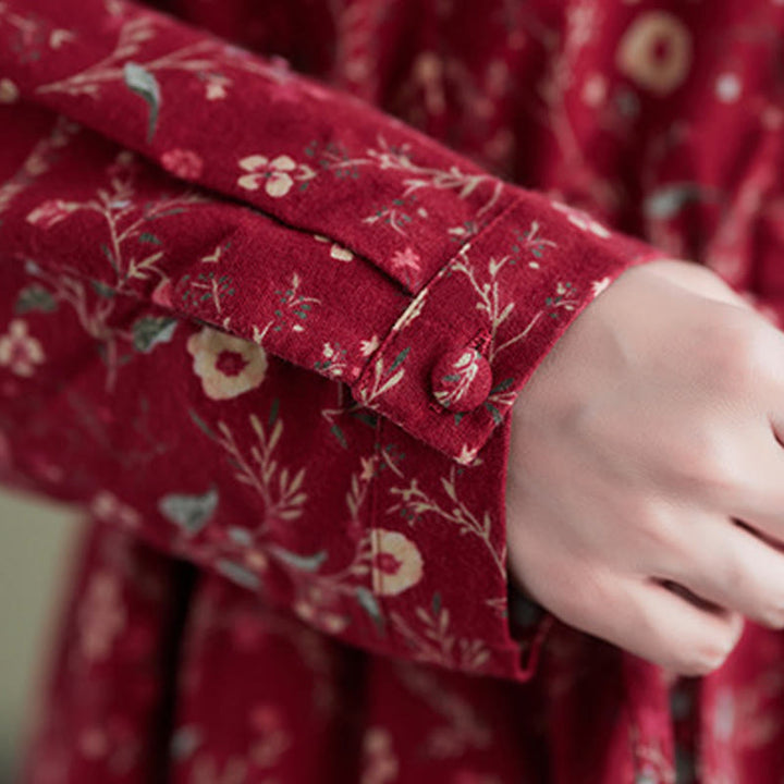Buddha Stonesエスニックプリント ドローストリング 長袖 コットンリネン ミディドレス ポケット付き - クリムゾン - US8-10,UK/AU12-14,EU40-42 (2XL) - image 6