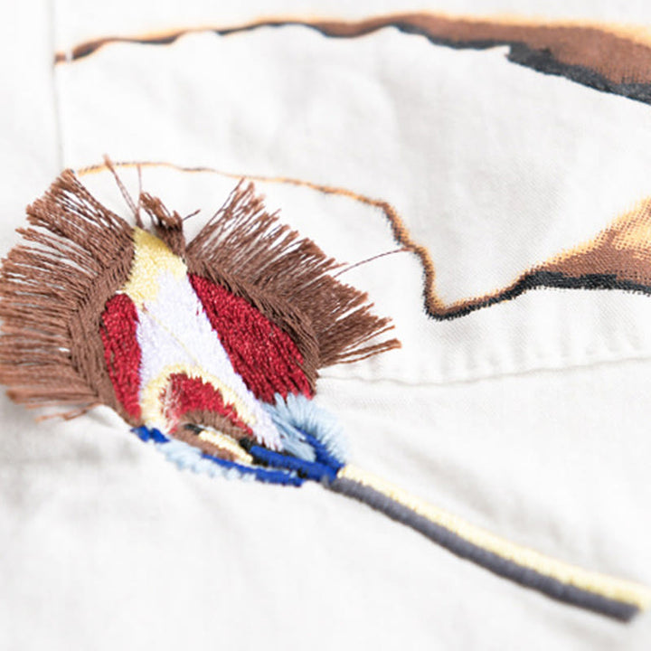 Buddha Stones刺繍マッチ炎柄ラペルメンズ半袖コットンシャツポケット付き - image 5