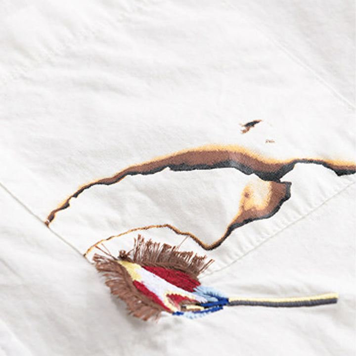 Buddha Stones刺繍マッチ炎柄ラペルメンズ半袖コットンシャツポケット付き - 白 - US/UK/AU42、 EU52 (3XL) - image 1