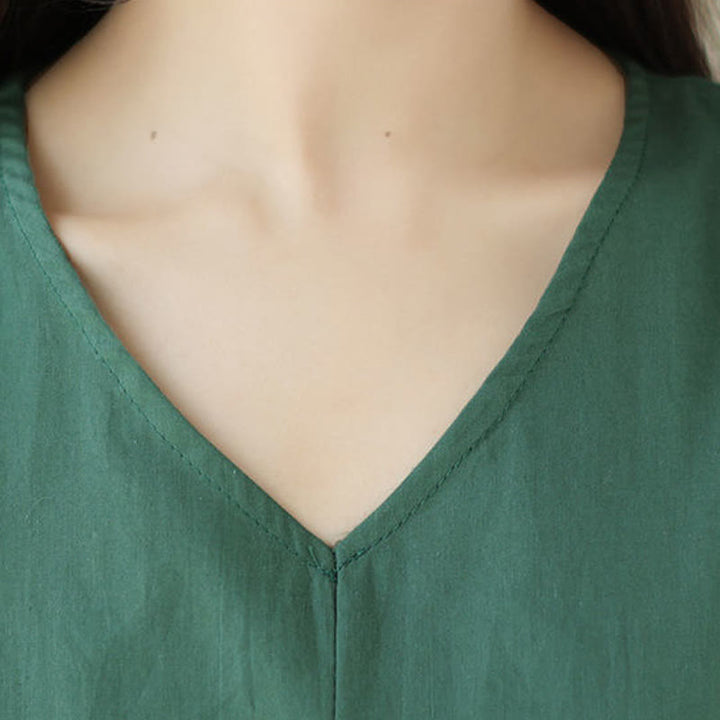 Buddha Stonesピュアカラー レースアップ 半袖 コットンリネン ミディドレス ポケット付き - image 5