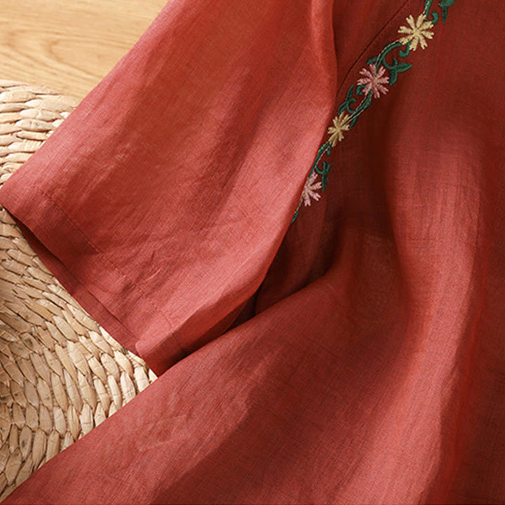 Buddha Stonesカジュアル 刺繍 花 コットン ポリエステル 半袖 レディース クルーネック シャツ - ファイアブリック - US14、 UK/AU18、 EU46 (2XL) - image 0