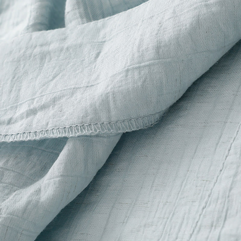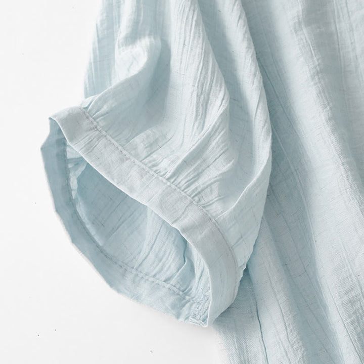 Buddha Stones無地 アシンメトリー レースアップデザイン パフ 半袖 レディース コットンシャツ - パウダーブルー - US8-10,UK/AU12-14,EU40-42 (2XL) - image 1