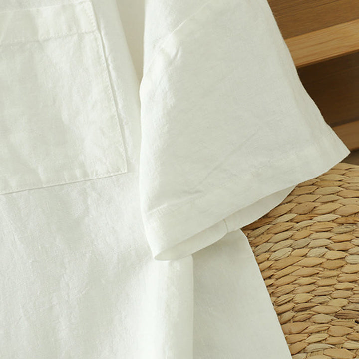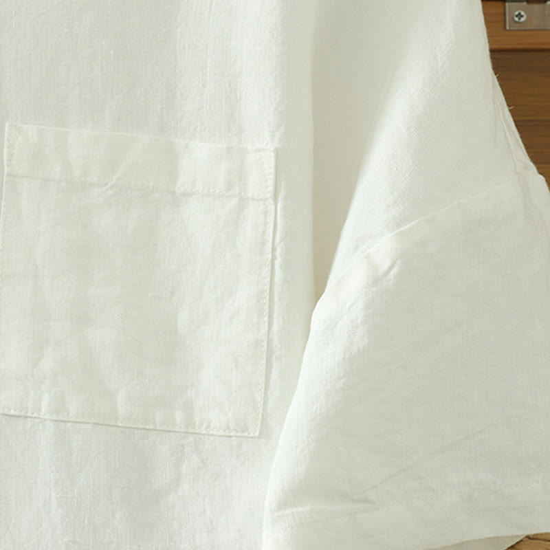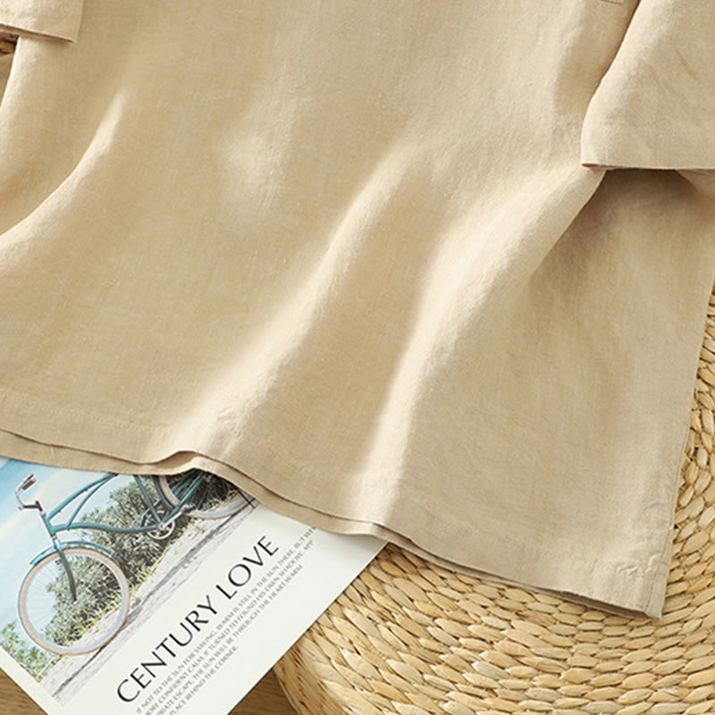Buddha Stonesカジュアル 無地 レディース コットン リネン Vネック Tシャツ ポケット付き