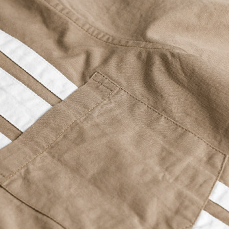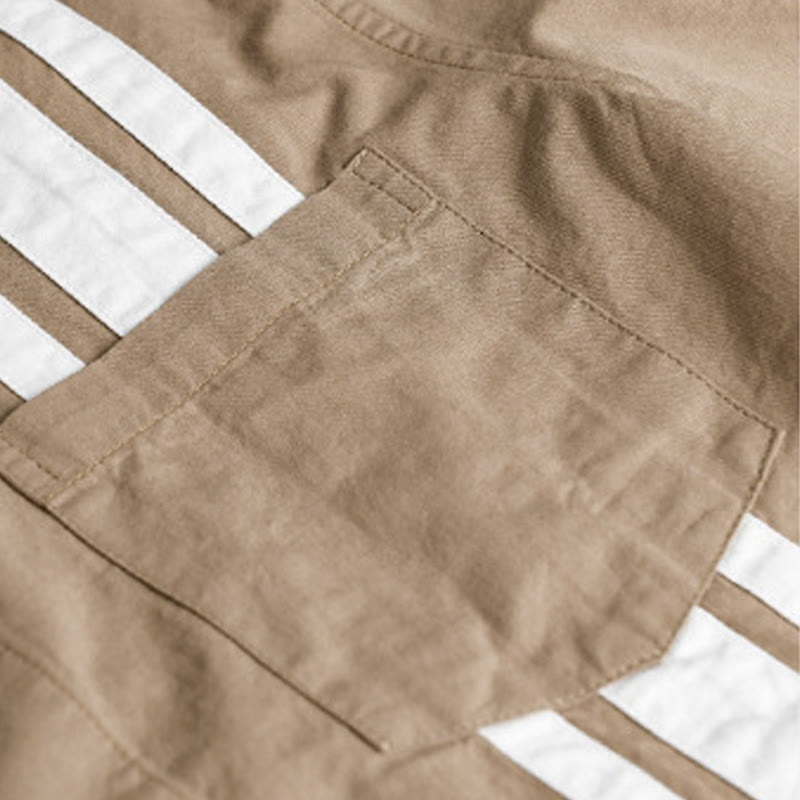 Buddha Stones秋 ラペルカラー コントラスト パッチワークデザイン メンズ 長袖 コットンシャツ ポケット付き - ベージュ - US/UK/AU42、 EU52 (3XL) - image 1
